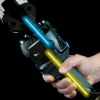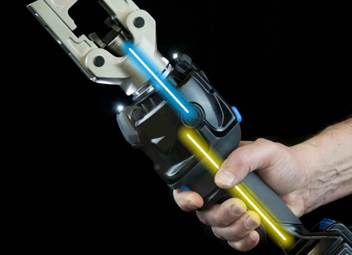 La herramienta de compresión a batería B500ND es adecuada para instalar conectores eléctricos de compresión en conductores de hasta 300 mm2. Esta herramienta adopta el juego de matrices estándar compatible con otras herramientas y cabezales de 50 kN. El cabezal puede abrirse y girar 180° para adaptarse a diversos modos de uso. Silenciosa y manejable, la herramienta de crimpado B500ND tiene una estructura biaxial equilibrada y un mango ergonómico para garantizar altos niveles de comodidad incluso con un uso prolongado. Para mayor seguridad, incorpora un botón de liberación rápida de la presión y un botón de funcionamiento protegido para evitar el funcionamiento accidental.