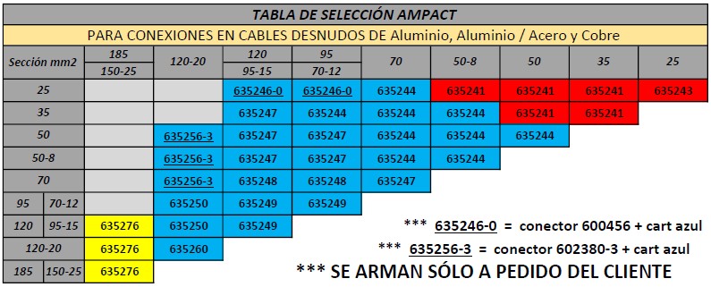 Diseñados para conectar conductores de aluminio o aleación de aluminio con o sin alma de acero. También puede realizar conexiones bimetálicas en condiciones ambientales no corrosivas.